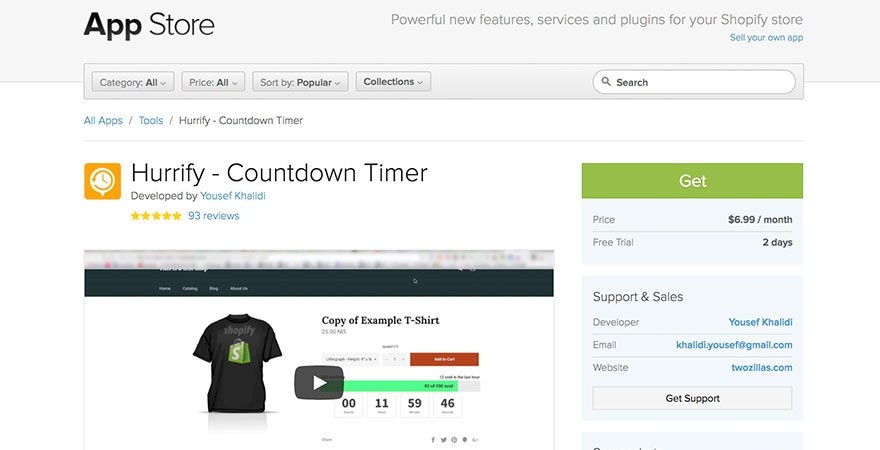 Hurrify是一个倒数计时器应用程序,使用稀缺性和紧迫性的结合,以帮助驱动客户进入冲动购买。当顾客看到计时器倒计时时,他们会感到更大的压力,迅速做出决定。如果他们普遍喜欢产品和价格,他们就更有可能购买。