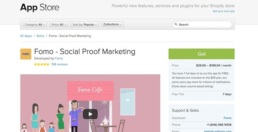 FOMO是一款社交证明应用程序。它会向客户展示还有谁在你的商店购买过产品,他们购买了多长时间以及来自哪里。在你的商店里看到快闪店的顾客会意识到你的商店有多受欢迎。它可以帮助提升你的品牌和一些社会认可,帮助你产生更多的销售。