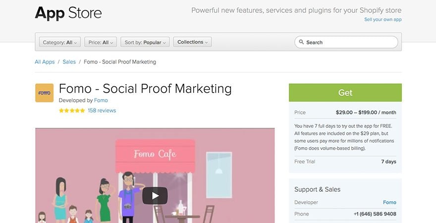 FOMO是一款社会证明营销应用程序。当一个人访问一个安装了FOMO的商店时,商店上会出现一个弹出窗口,显示你最近在商店的购买情况。它向顾客展示了购买的产品,在哪个城市购买的,以及多久前购买的。社会认同正在产生,因为它表明客户实际上在购买你的品牌。而包含时间则表明你的商店非常受欢迎,所以现在就有人在购物。