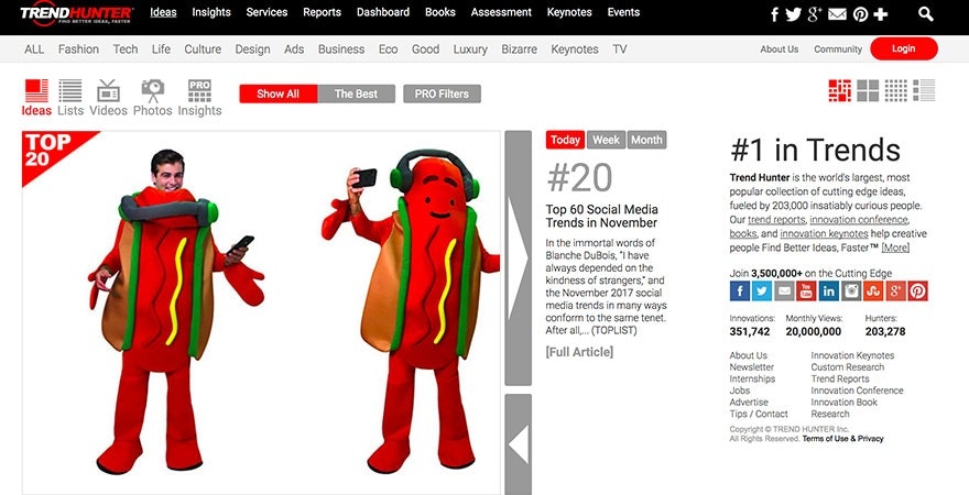 趋势猎人是一个流行的网站,列出各种利基趋势。你会发现时尚、珠宝、小工具、家居等细分市场的趋势。如果你浏览了几篇文章,同时与速卖通或谷歌趋势,你会发现相当多的产品可以添加到你的商店。一些趋势是一般的想法,而另一些则更专注于产品。