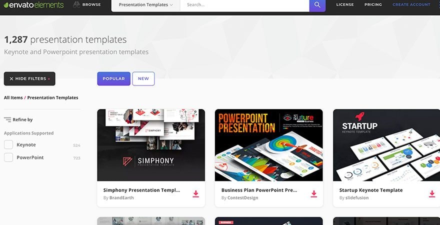 Envato演示模板可以让你的演示文稿看起来更简洁。如果你不在镜头前,你可能会做一个幻灯片演示。如果你预算有限,你可以使用PowerPoint或Keynote中的演示模板。然而,如果你有预算,想要一个专业的演示,你可以在Envato上从数百个伟大的设计中选择。