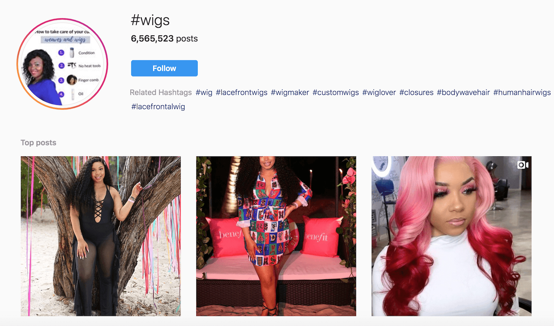 让我们假设你在出售假发、接发和其他头发相关产品通过你的商店。你可以在Instagram上搜索与产品相关的标签,找到对护发产品充满热情的人,然后看看他们的Instagram动态,看看他们是如何谈论护发产品的。