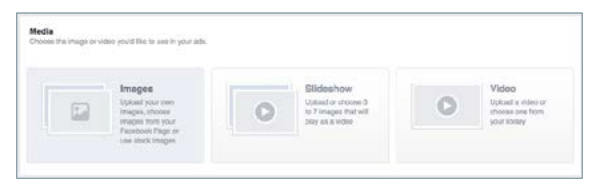 Next, choose what will be the media for your ads: images, slideshow, or a video. I would suggest to begin with using images for your ads: