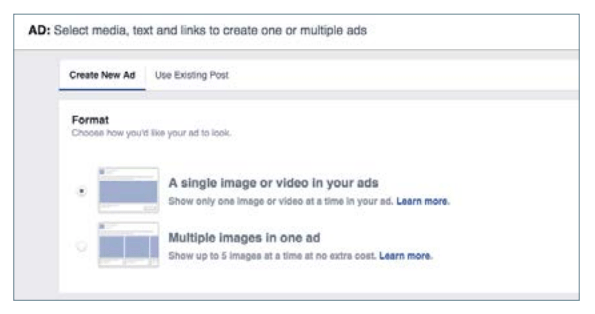 If you wanted to promote a few products from the same category in one ad, go with the multiple images format. If you have just one specific offer, choose single image format.