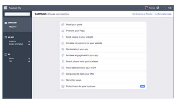 You will immediately see a list of the main campaign objectives that you can choose from: