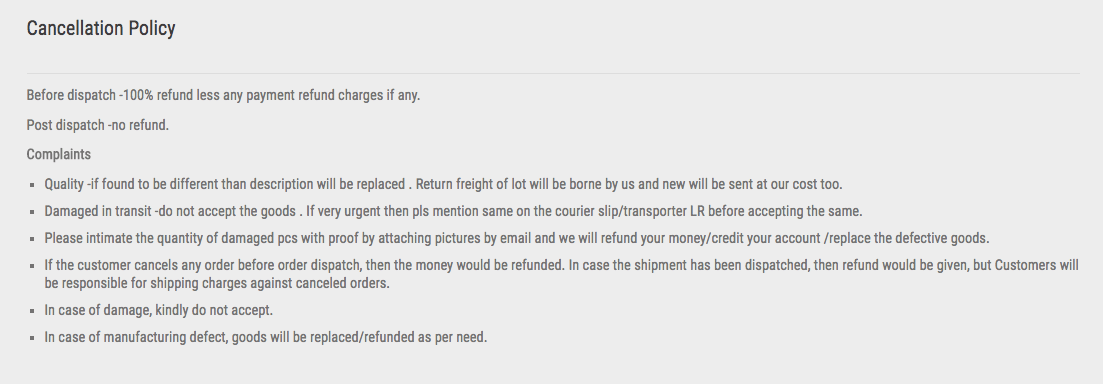 正如你所看到的,批发供应商告诉我,他们没有退款的追索权,因为“我们没有这样的政策”。奇怪的是,他们的网站上说的完全不同。