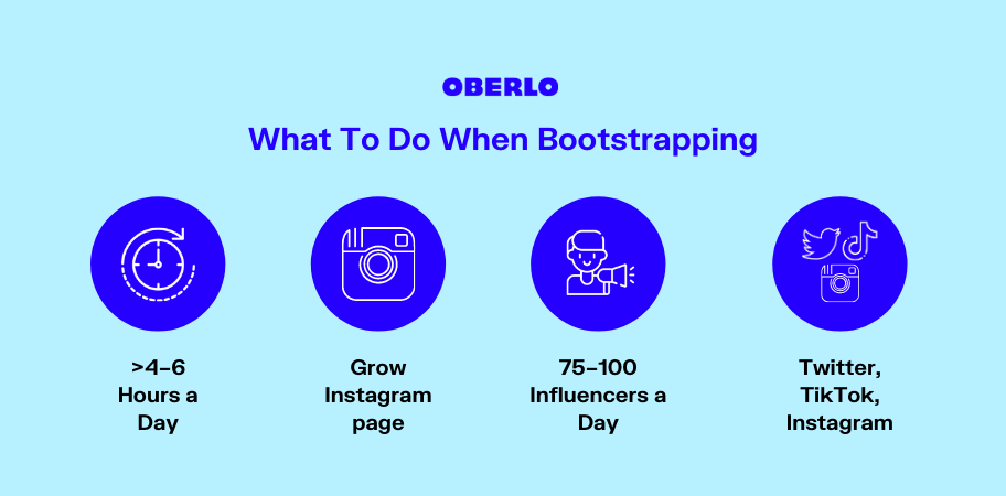 - If bootstrapping, build an Instagram page, reach out to at least 75 influencers every day, and focus on Twitter and TikTok as well.
