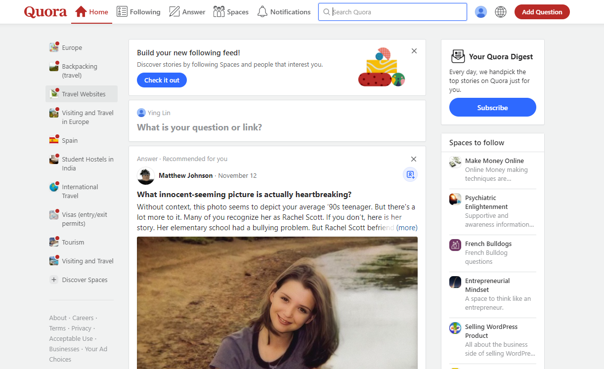 你可以做付费广告,或者你也可以做的是,你可以回答问题,链接一个产品,或者链接任何能解决别人问题的东西。现在,这些问题和答案有时会有成千上万的浏览量,因为它们会通过电子邮件发送到Quora的数据库。所以这是一个被低估的营销平台。