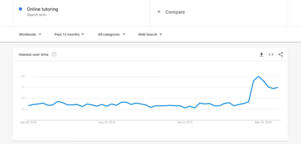 现在,每个人都在家。这包括学生,也包括那些想要在自己的公寓里学习一项新技能或爱好的人。事实上,去谷歌趋势搜索在线辅导,你会看到这个搜索词在最近的搜索量飙升。