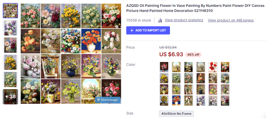 如果你想抓住数字油漆的趋势,销售不同类型的产品,可以考虑销售定制的数字油漆套件。供应商将允许你上传自定义照片,比如家庭照片或宠物照片,然后他们会为你的客户创建一个数字绘画工具包。