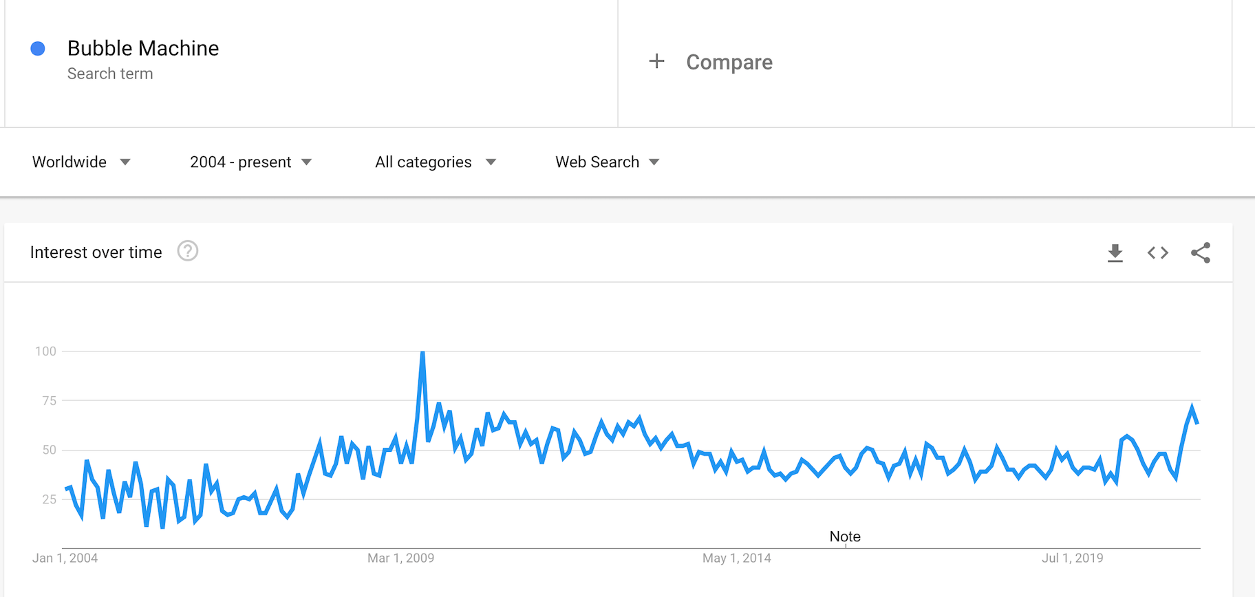 而且,我们可以通过观察谷歌趋势数据以及人们在谷歌上搜索的内容,这些泡沫机器现在正处于上升趋势,整个夏天都将如此。