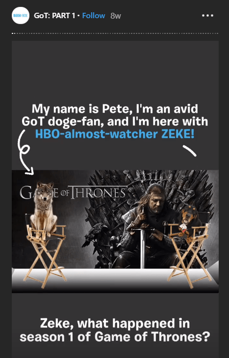 他们甚至创造了一个傻瓜Instagram的故事《权力的游戏》大结局的剧照——这表明他们已经做了调查,知道他们的目标观众喜欢《权力的游戏》。