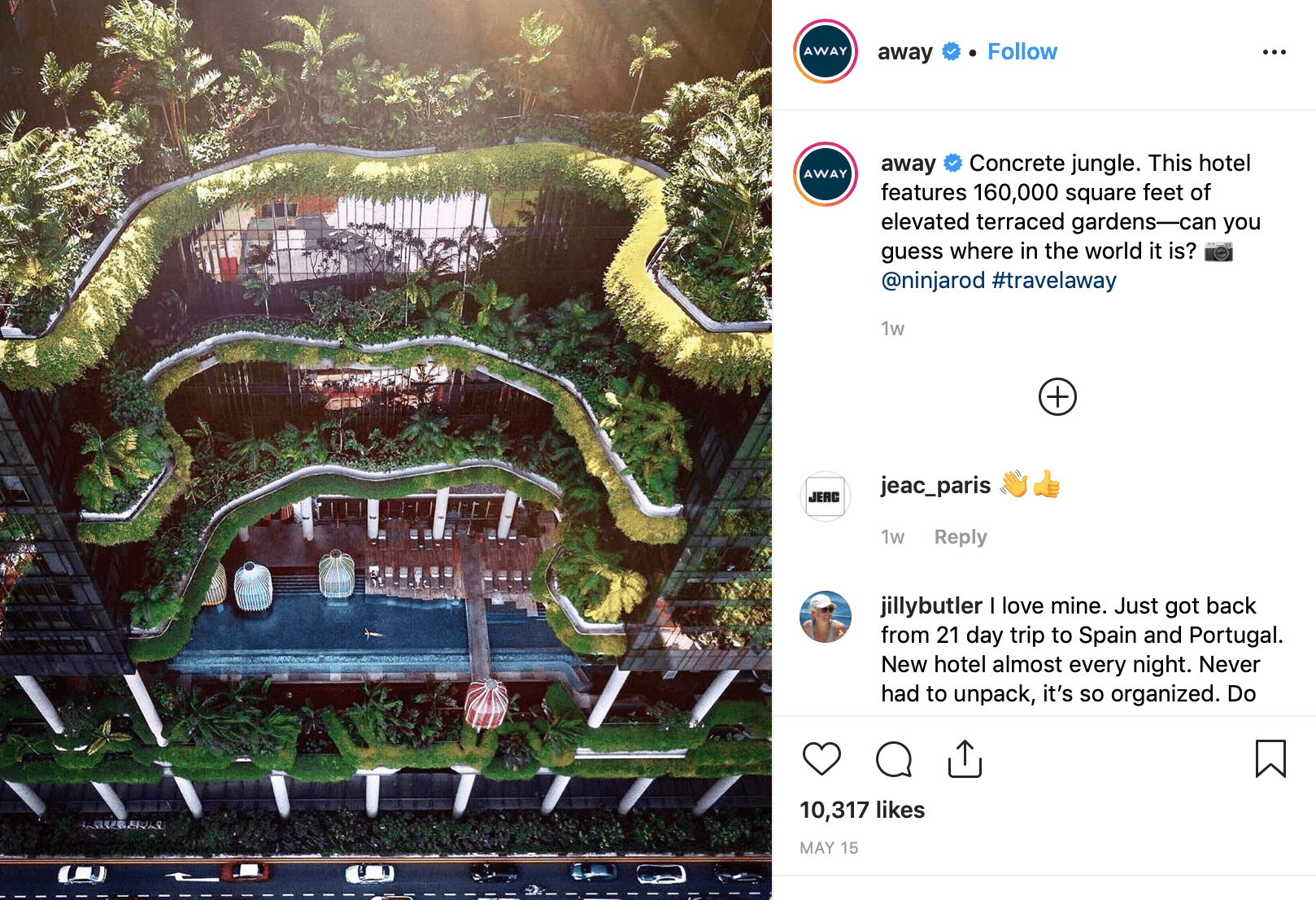 例如,旅游品牌走了鼓励人们使用有趣、独特的提示与他们的帖子进行互动: