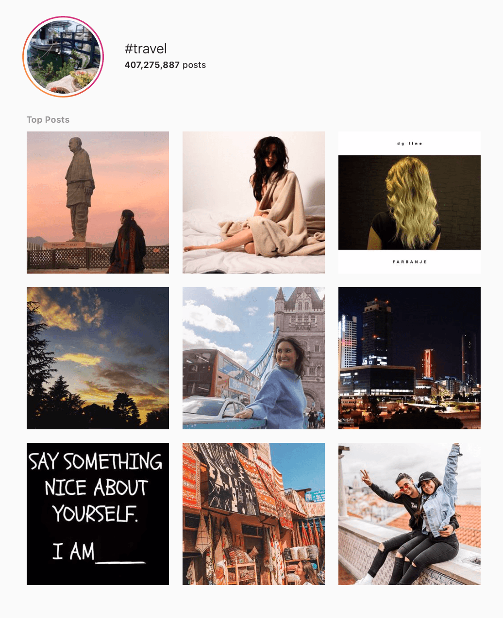 例如,#旅行标签目前有超过4.06亿篇帖子: