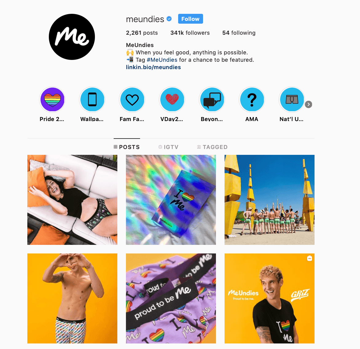 在这里您可以看到自定义URL@MeUndies,他们可以通过帖子的说明文字和Instagram故事指导用户: