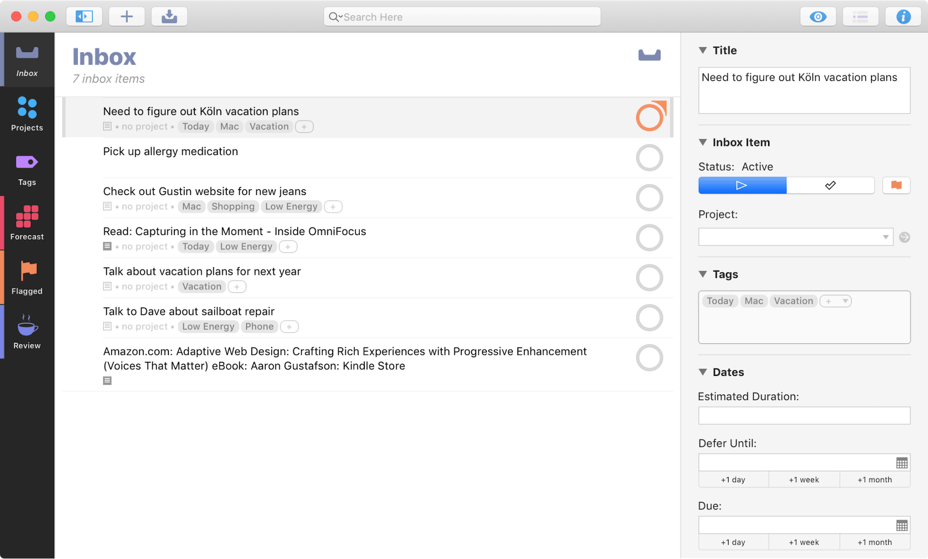 OmniFocus是iOS和Mac中最好的任务管理器之一——颜色编码、可定制的标签、项目和跨设备同步帮助你保持一长串任务的组织和管理。为每一项任务添加动作,并设置提醒以确保事情真正完成。