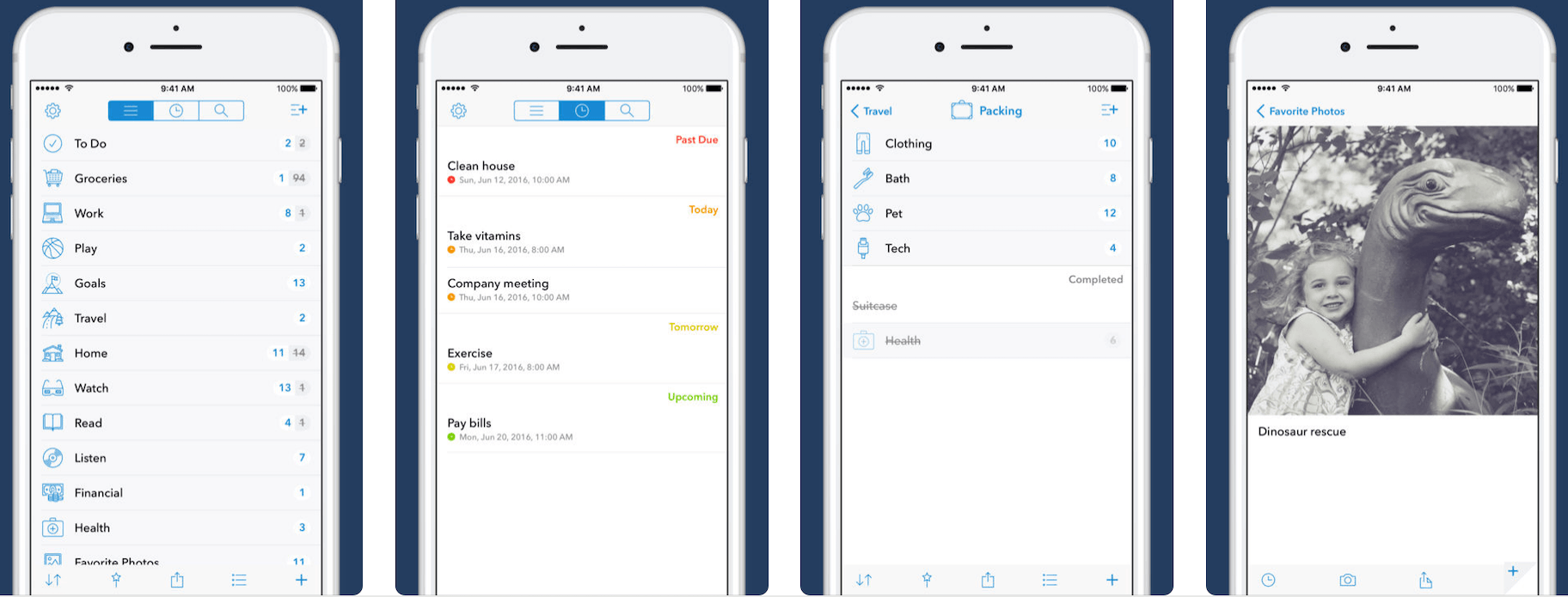 苹果提醒是一个基本的iOS任务管理器,预装在苹果设备上。这款免费应用会在基本的清单或日历视图中列出任务。要创建列表,可以手动添加,使用Siri,从其他应用程序直接添加,并将未接电话转化为任务。用分类来组织任务,并与同事共享列表(只要他们使用iCloud)。