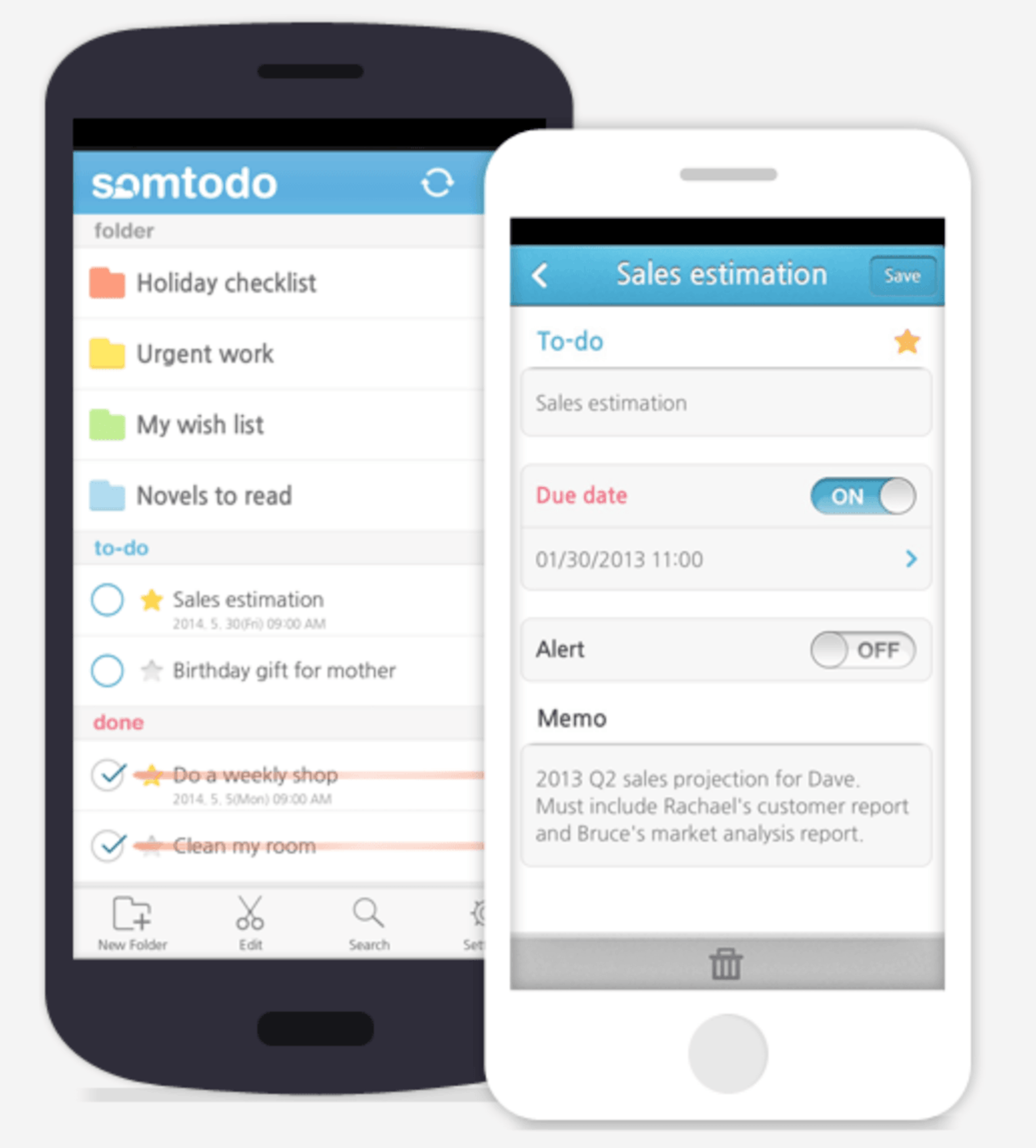 SomTodo是一款非常好用的Android应用程序,它通过文件夹来组织任务。与本综述中的许多其他应用程序一样,SomTodo能够添加截止日期、提醒、类别和注释。它还可以让你每天查看,并在不同设备之间同步,所以你总是可以准确地看到你的盘子里还剩下什么。