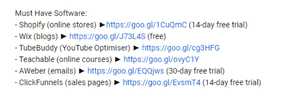 她在这种风格上如此成功的第二个原因是她在某种程度上保持了一致。在她的附属工具页面,她把它保持到最低限度。她展示了一个她信任的品牌,然后用一两行字解释。