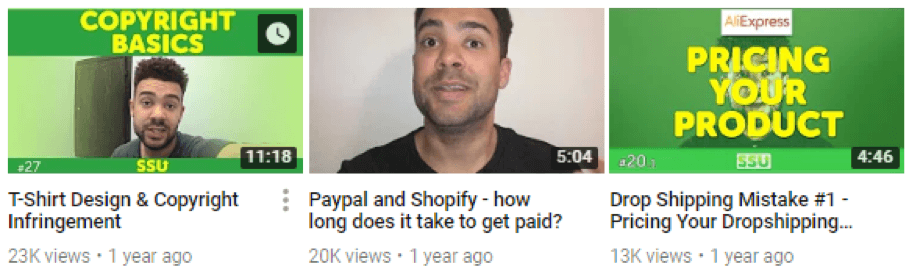 另一种让他非常清楚自己的利基市场的方式是创建精选播放列表。例如,他的一个播放列表是完全献给那些有兴趣学习如何在线销售t恤的人的。