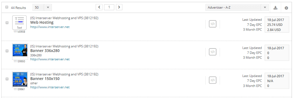 一旦你选择的公司批准了你的申请,你需要找到你将用来驱动流量的链接。要做到这一点,导航到标题菜单上的Links选项卡。你会看到一个和广告主页面非常相似的页面,像这样: