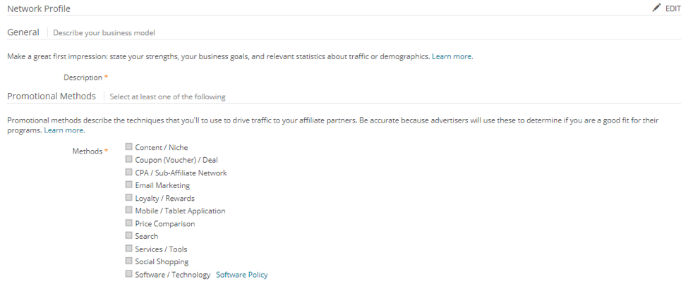 就像其他的附属计划,你需要通过一个相当广泛的注册开始。在这种情况下,你将输入从你的在线品牌信息到你想要设置的收入支出阈值的所有内容。