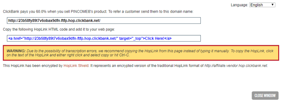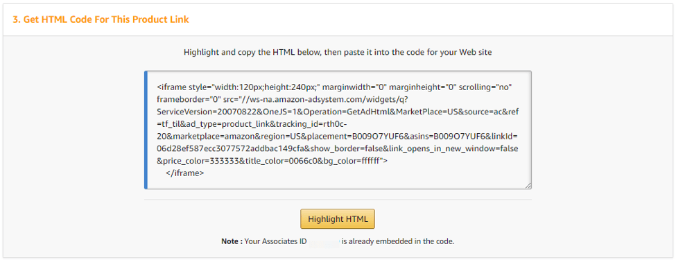 然后你会得到你的附属链接,你可以在自己的内容中使用。