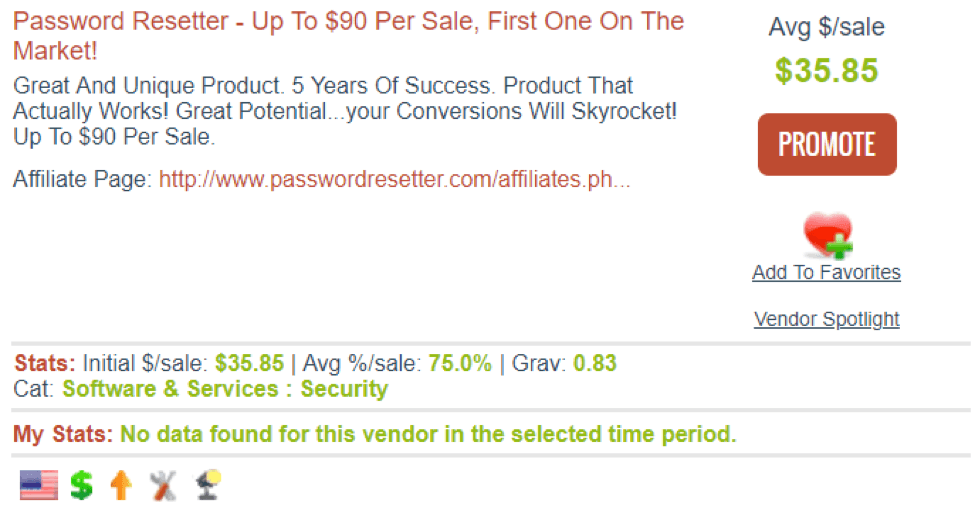 在这种情况下,你会得到每笔销售的平均佣金,产品细分市场的细分,以及公司网站的几个不同链接。使用这些来进行进一步的研究,看看你是否想要推广产品。