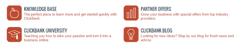 完成设置之后,剩下的就相对简单了。作为一个新创建的ClickBank附属机构,您将拥有一个巨大的资源数据库供您使用。这可以帮助您更多地了解ClickBank提供的服务,并回答您可能存在的任何挥之不去的问题。