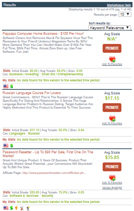 你可以找到你想推广的产品去市场吧.在这里,您可以搜索特定的项目,或浏览侧栏以更广泛地了解ClickBank提供的服务。