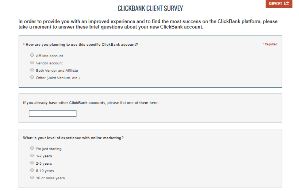 您还将被要求完成一个快速调查,帮助ClickBank在您完成该过程后为您提供更好的体验。