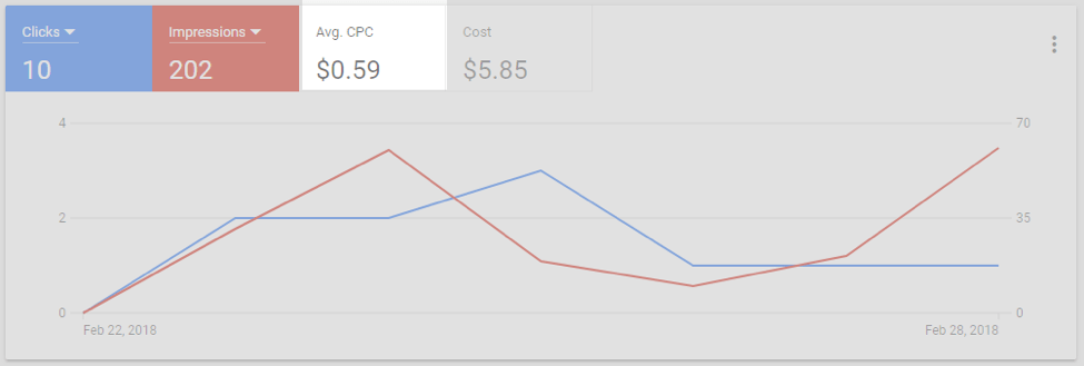 然后当你运行一个广告几天后,你就可以在你的广告仪表板上看到每点击的平均成本: