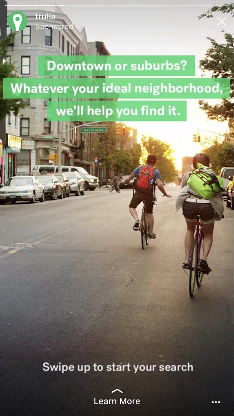 故事广告会从人们关注的账户中弹出在Facebook和Instagram故事之间。他们可以为潜在客户提供积极的体验。它们还在底部有一个行动号召。