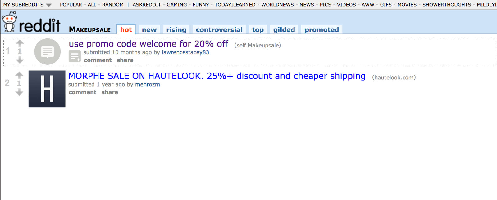 另一种为你的Reddit用户提供有价值内容的方法是通过你的Reddit帖子公布促销代码和销售情况。如果你创建自己的线程,而不是在现有的reddit上宣传你的销售,这种技术也会发挥最好的作用,但这始终是一个使用你的判断力的问题。在后勤方面,把你的帖子安排在交通高峰期。在Reddit上,这些时间包括周日晚上和工作日下午4点。