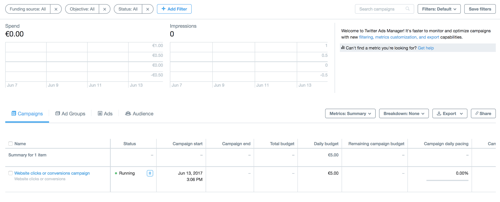如上所述,Twitter的付费广告系统与其他营销渠道的运作方式类似。一旦你建立了你的帐户,采取以下步骤来准备你的广告活动。