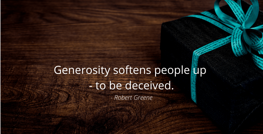 一个诚实的举动可以帮助掩盖几十个不诚实行为的痕迹。通过慷慨,你甚至可以解除最多疑的人的戒备。一旦他们被解除武装,你就可以随意操纵他们。欺骗成功的关键是分散注意力。一个慷慨的行为会分散那些你想欺骗的人的注意力,同时把他们变成温顺的孩子,为你充满深情的举动感到高兴。