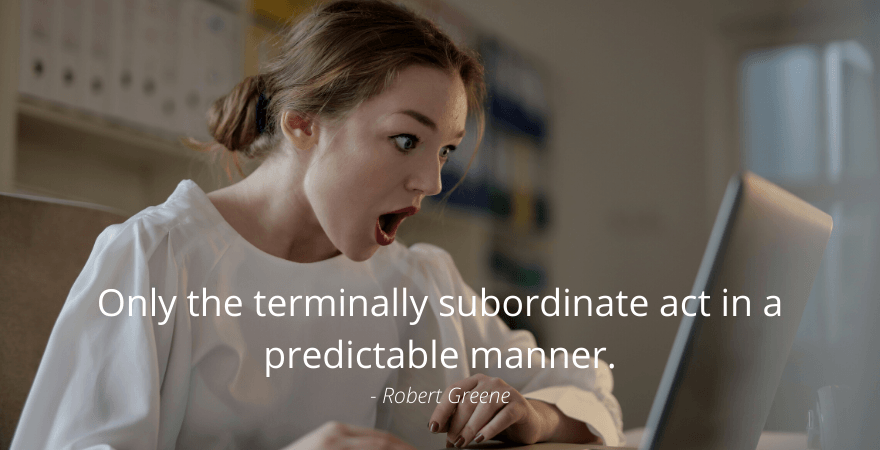 人类是习惯的生物,会在他人的行为中寻找熟悉的模式。通过不可预测的行动,你的对手会因为试图预测和分析你的动作而筋疲力尽。这意味着偶尔会在没有警告的情况下进行攻击。当你的行为可预测时,你就给了别人控制你的权力。如果你表现得出人意料,他们会觉得他们不理解你,会被吓倒。