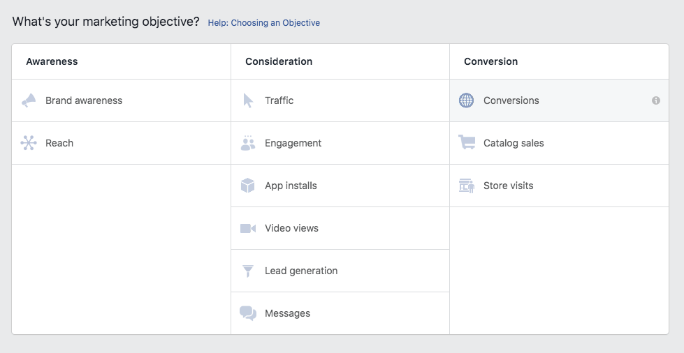 当你在Facebook Ads Manager中设置第一个广告活动时,你会选择什么样的营销目标?