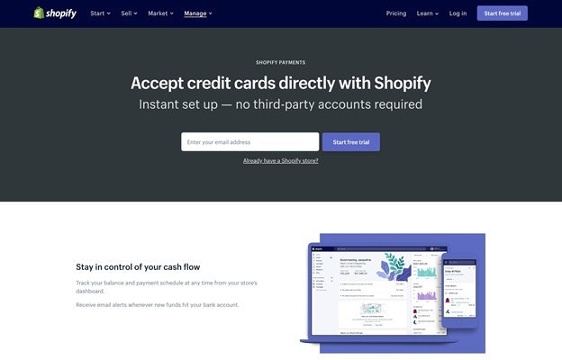 Shopify Payments也与Facebook的商店, Pinterest可购买的别针,Facebook Messenger,亚马逊,eBay等。