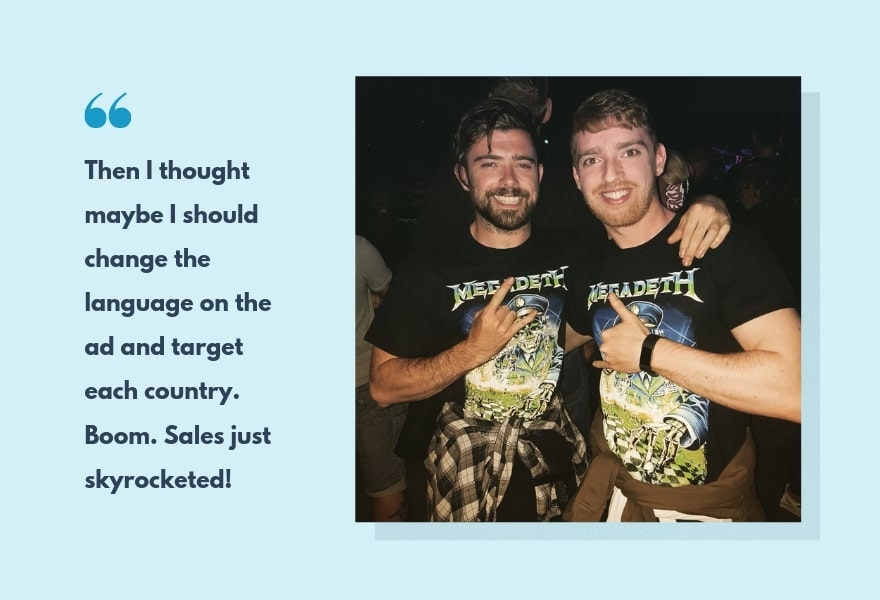 我只是把广告定位在爱尔兰,然后我把业务扩展到整个欧洲。然后在两周的时间里,我也用特定的当地语言做了广告。