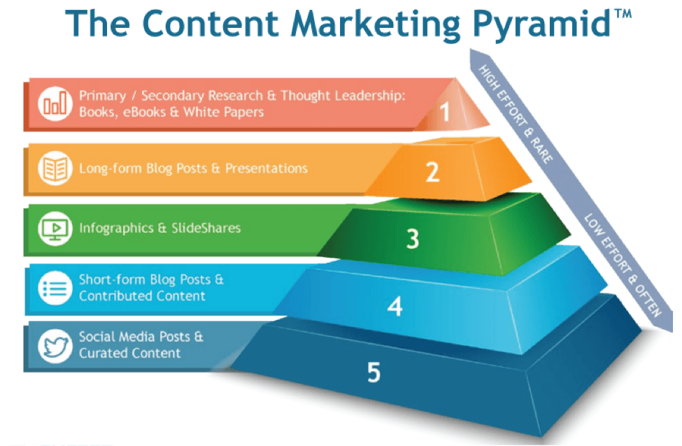 库拉塔的内容营销金字塔提供了一个有用的方法来查看您应该多久发布不同类型的内容。如果你仍然不确定从哪里开始,看看竞争对手使用内容营销成功。