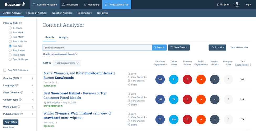 BuzzSumo特别强大,因为它可以让你看到某些关键字的最佳表现内容: