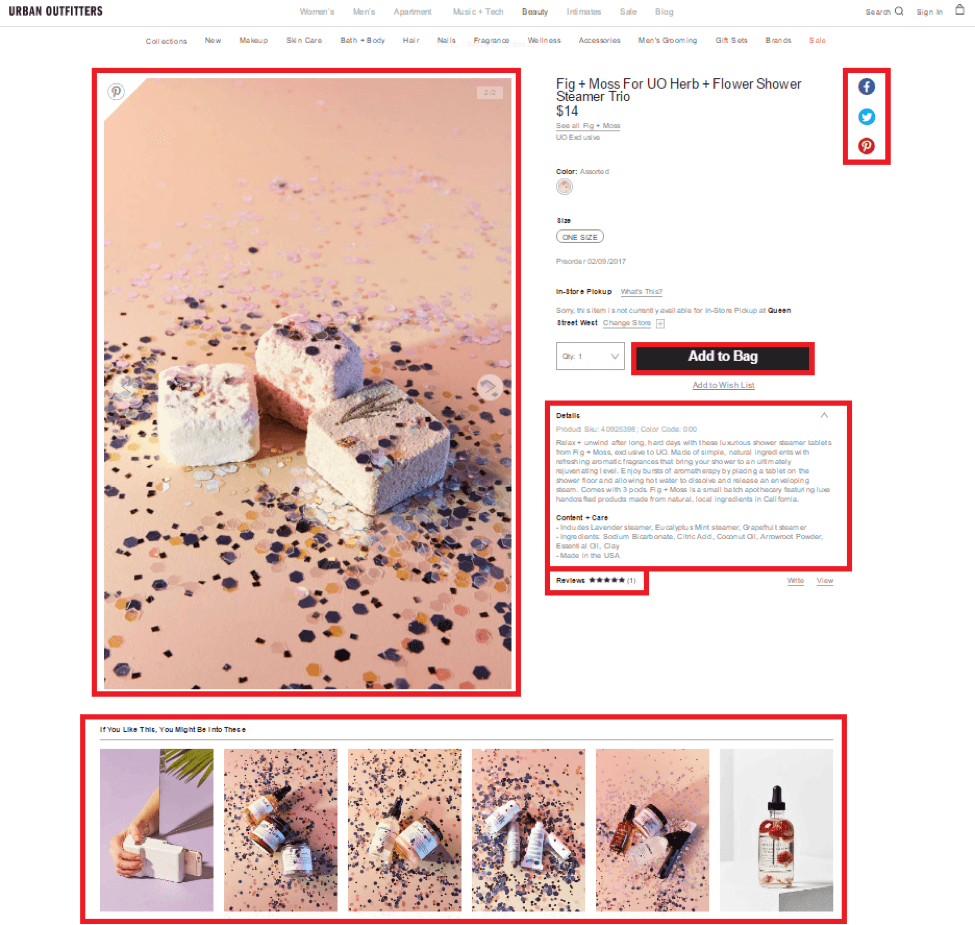 为什么我们喜欢它:有几个不同角度的产品图片。还有人使用该产品的图片。白色背景上醒目的“添加到包中”字样与公司的品牌很相配。发货和退货信息列在产品页面上。社交分享按钮没有提到有多少人使用过它,如果他们的分享率低,这是很好的。产品描述简洁明了,并使用了许多要点以方便阅读。他们也有一些推荐的产品,尽管有些看起来太相似了,可能会引起混淆。