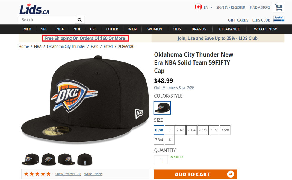 提到或添加一个“订单满75美元免运费”或“美国境内免运费”的图标,可以帮助客户了解送货信息。