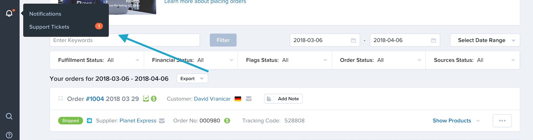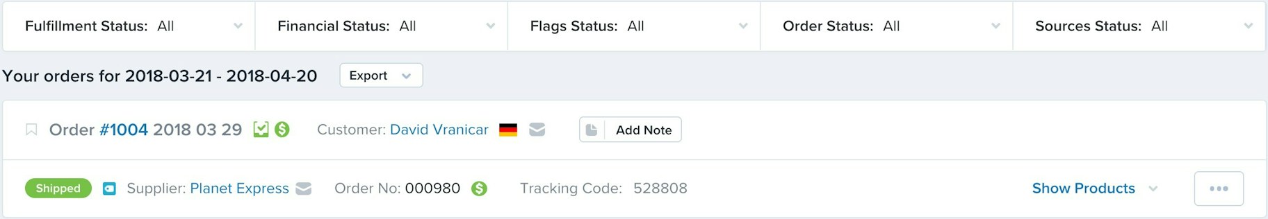 We need to contact the supplier about this red bandana. To do that, we’ll find the relevant order inside the Oberlo app. Here it is: