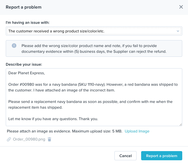In the past, this would have been a headache for everyone involved. The customer has the wrong product. You have an annoyed buyer. And the supplier has a merchant who just lost money, a customer, or both.