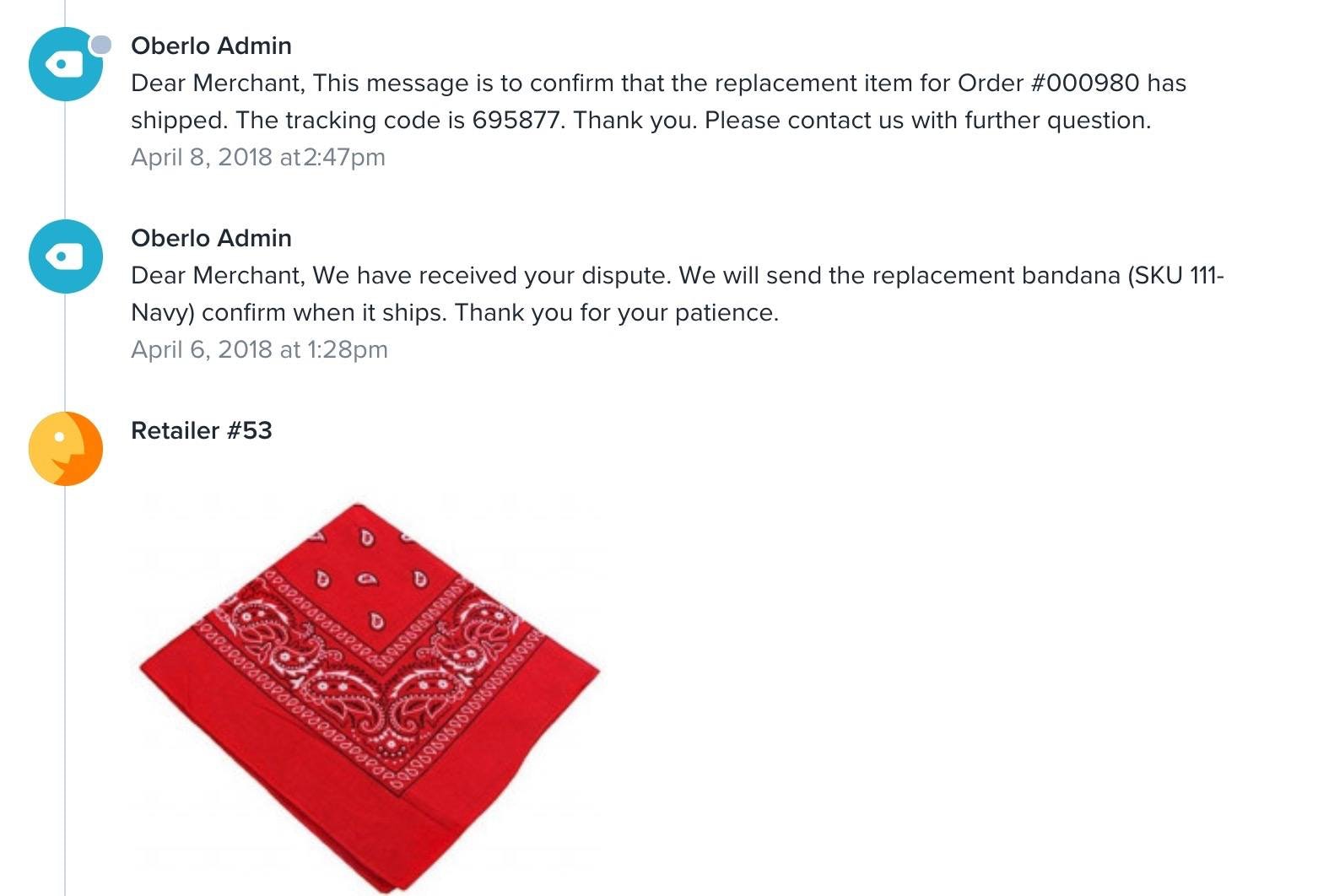 Every Oberlo supplier is plugged into Dispute Management and will be automatically notified when you report a problem or request a refund. This opens up a dialogue between the merchant – you – and the supplier.