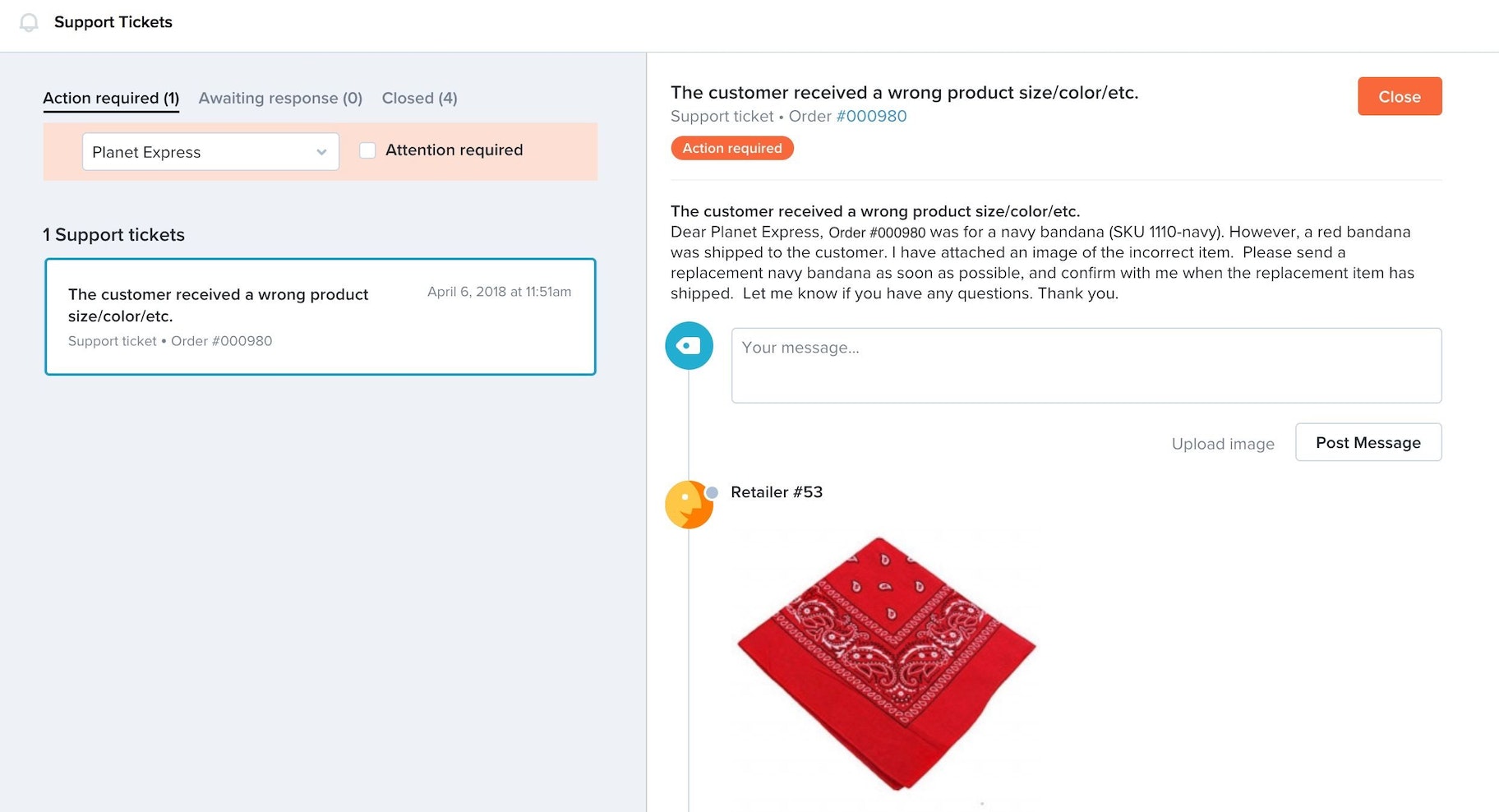 Dispute Management can’t magically make the bandana turn blue, but it does give you a quick, reliable way to resolve the issue with your supplier.