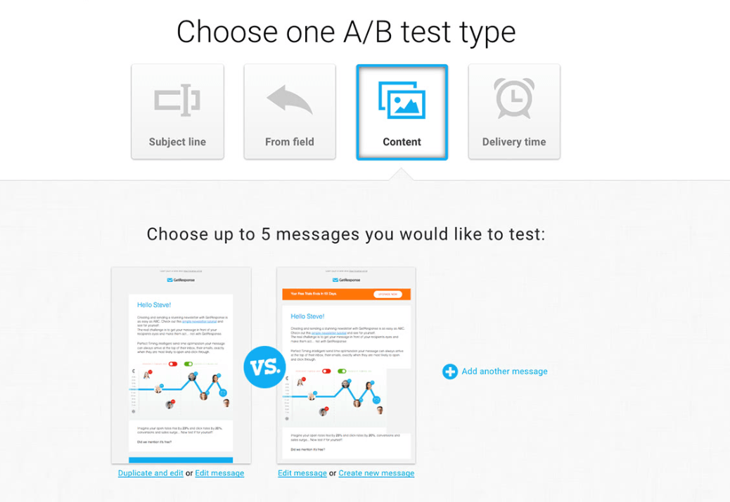 此外,GetResponse使您能够执行一系列测试,可以帮助您识别广告活动中最有效的电子邮件。这可以通过A/B测试来实现,这种测试可以让你尝试不同的主题、通讯、交付时间、电子邮件内容和其他一些因素。