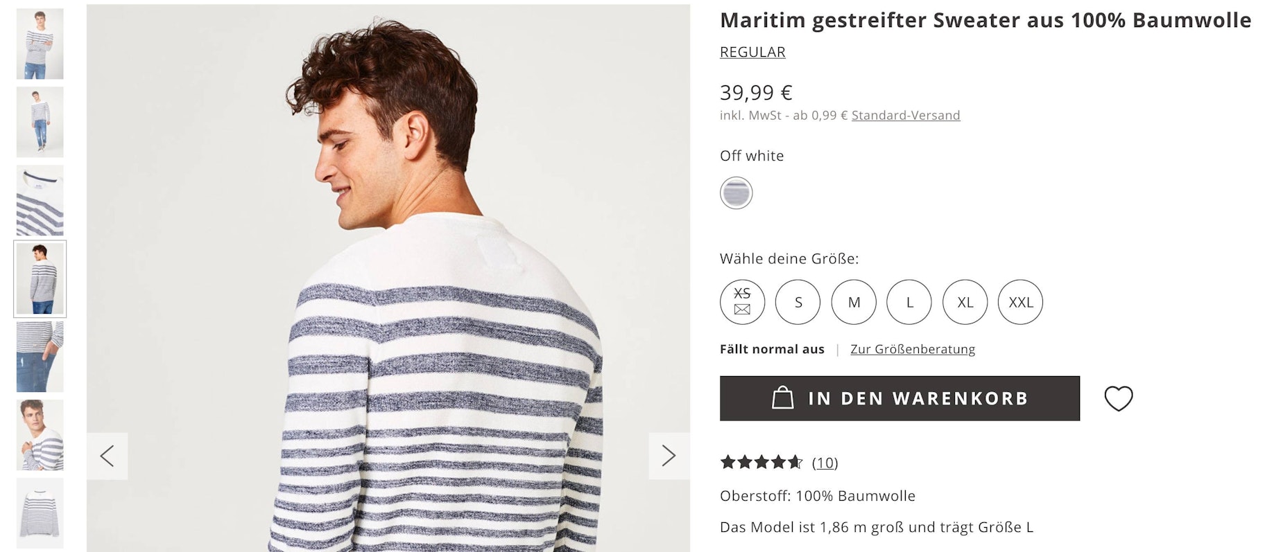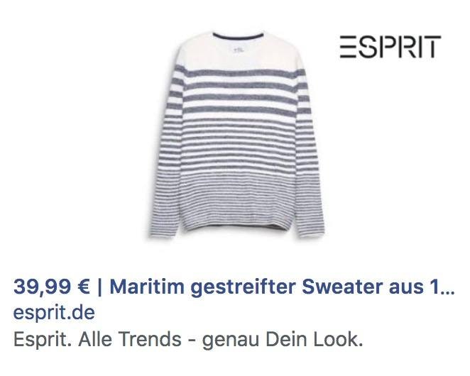 让我们找一些关于Esprit的东西。哦,是的,这件白蓝相间的毛衣很漂亮: